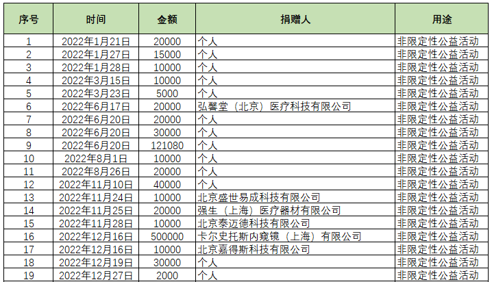 北京市王忠诚医学基金会《2022年爱心捐赠名单》