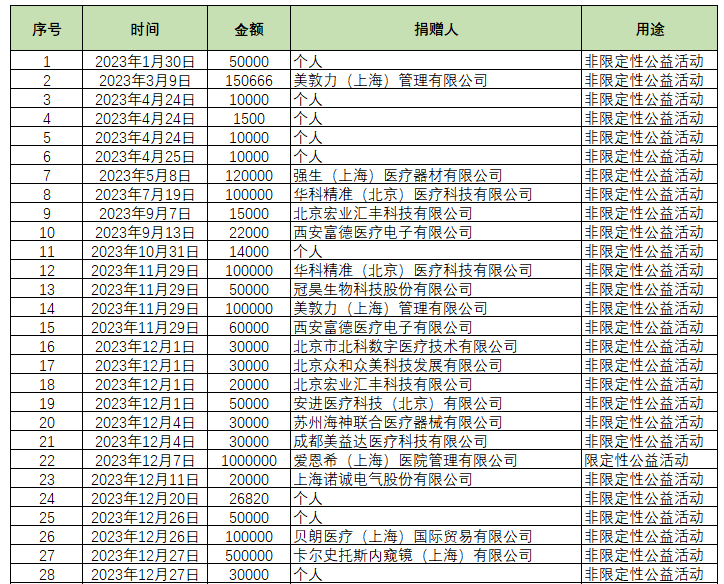 北京市王忠诚医学基金会《2023年爱心捐赠名单》
